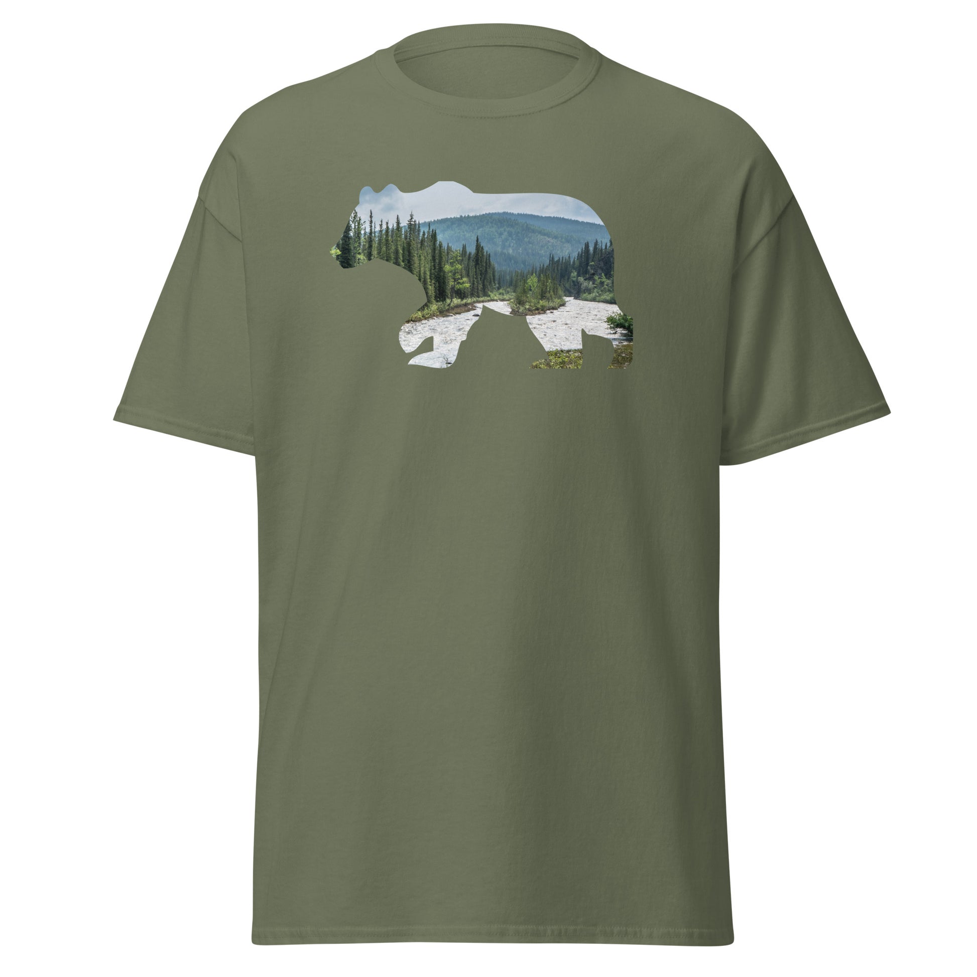 This premium quality tee is perfect for those who love nature and wildlife. Crafted from 100% cotton, this t-shirt is designed to be ultra-soft, comfortable and durable, making it ideal for everyday wear. The bear silhouette design features a bold and striking outline of a bear, showcasing its strength and power and inviting you into its habit that is embedded inside. Whether you're out on a hiking trip, enjoying a day out in the park, or simply running errands, this t-shirt is perfect for all occasions. • 100% cotton • Double seam at sleeves and bottom hem