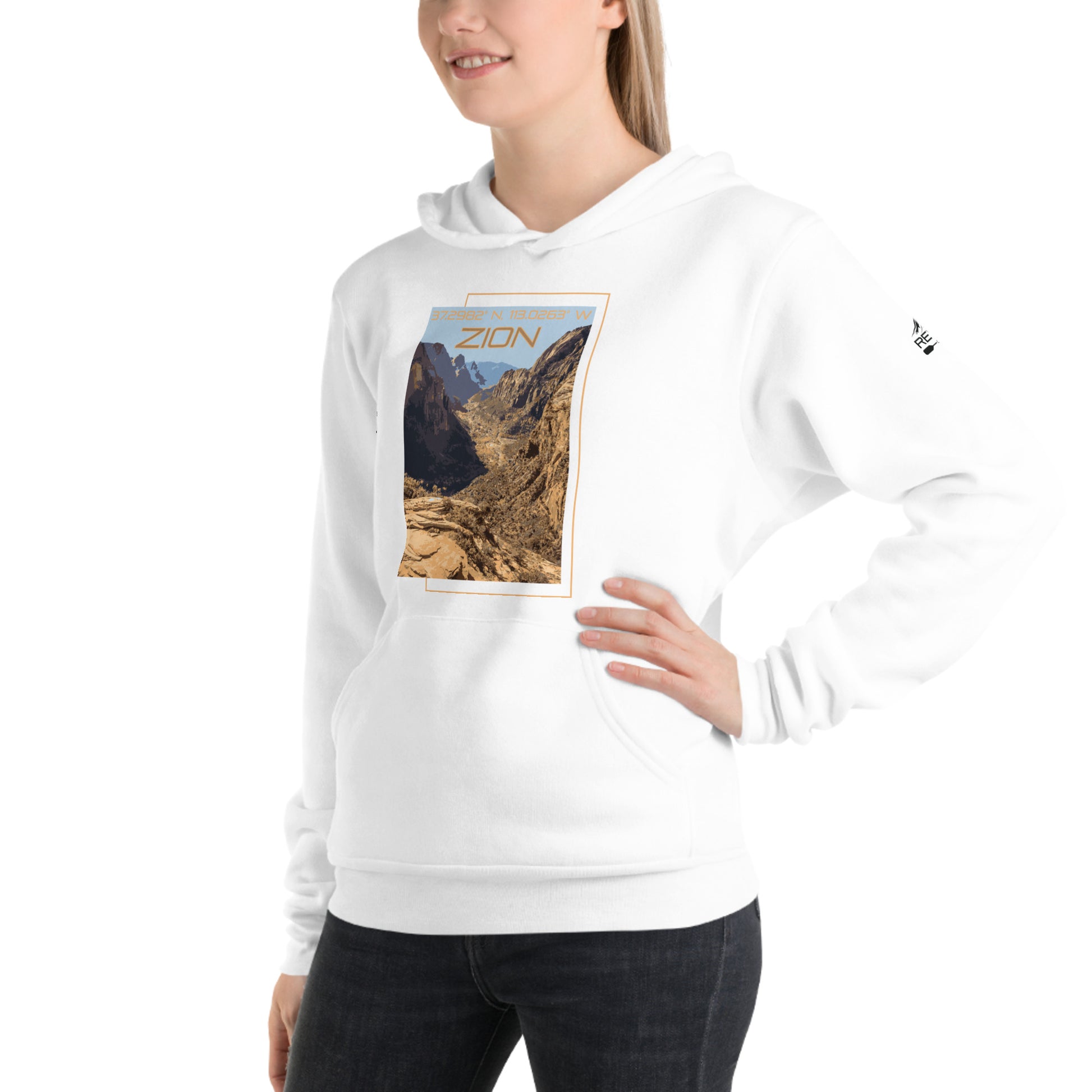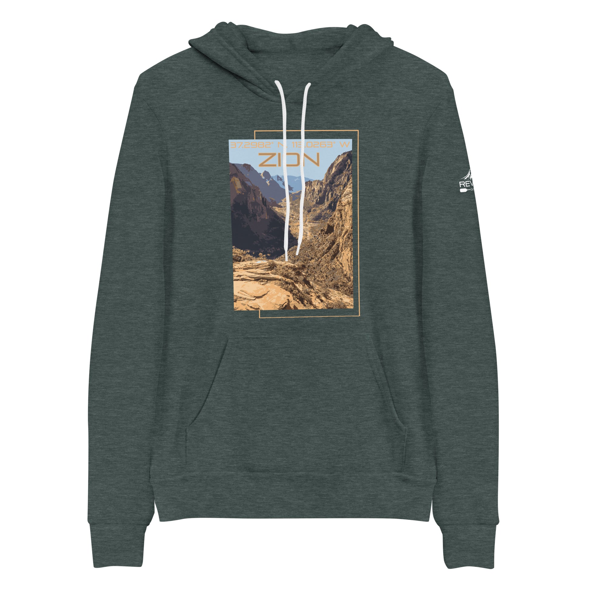 Zion has been the 3rd most visited National Park over the last few years. If you haven't been yet, it's a must see. This lightweight soft hoodie will help get you there with some exact Coordinates right up to the front entrance. Plus it features our favorite image taken by our team.